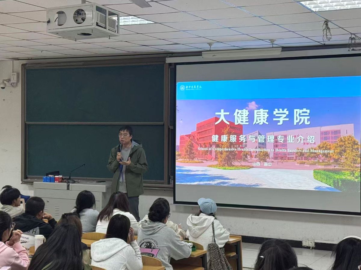 健康服务与管理专业的入学教育由张晋老师主讲,他以“健康中国背景下的专业成长之路”为核心,帮助新生理解专业价值与发展路径。张晋老师首先拆解了专业课程的“三维结构”:“第一维度是健康理论基础,包括《流行病学》《健康管理学》,让大家掌握健康服务的核心逻辑;第二维度是技能课程,如《健康评估》《康复护理技术》,培养大家的实操能力;第三维度是管理与服务课程,《健康服务营销》《社区健康管理》则侧重提升大家的运营与沟通能力,满足行业对复合型人才的需求。”